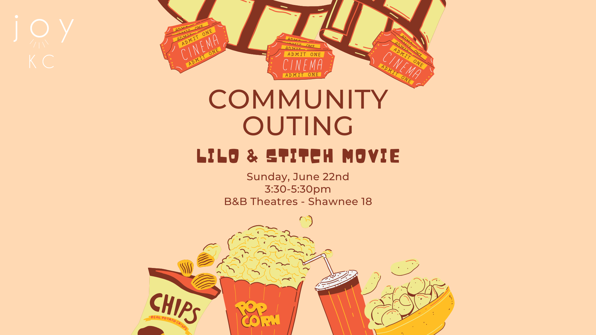 We will meet at B&B Theatres in Shawnee for a private viewing of Lilo & Stitch on June 22nd! Please direct all community outing questions to Brittney (brittney@joykc.org).
